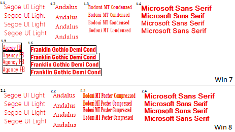 • Windows 8 shows much better results for the same fonts than Windows 7, it seems Microsoft is working on improving common fonts rendering.